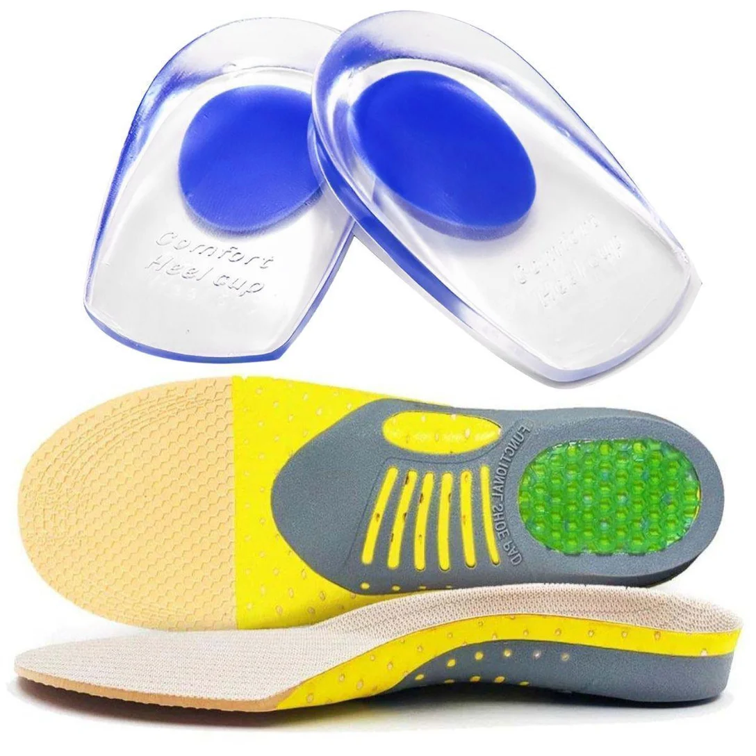 Kit 2 Pares Palmilhas Ortopédica dor na sola do pé dor no calcanhar – Bege+Vermelho